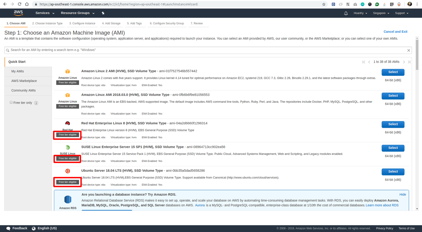 Free tier eligibletức bạn có thể sử dụng nó theo cấp free. - Ở đây, mình cứ chọn Server Ubuntu 18.04