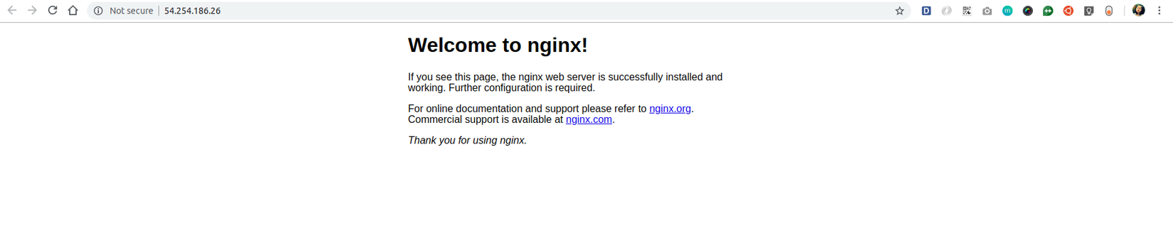 sudo service nginx status -> Active: active (running) since Wed 2019-07-24 03:42:54 UTC; 8s ago -