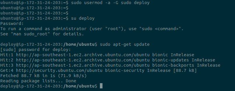 Tạo thêmuserubuntu@ip-172-31-24-203:~$ sudo adduser deploy