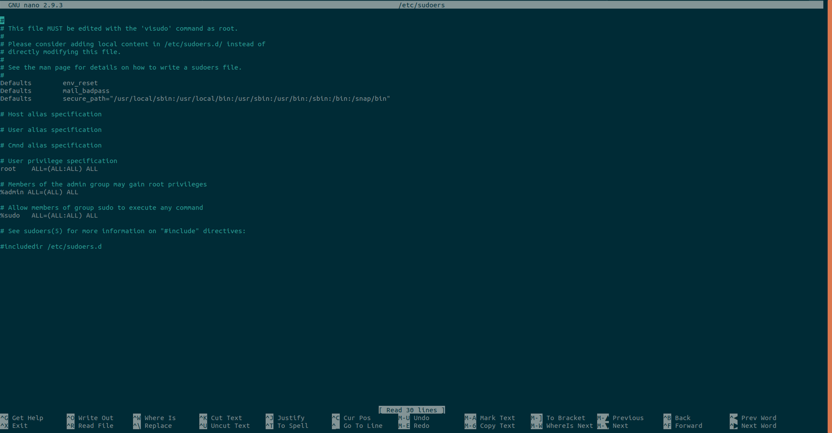 cấp quyềnsudo cho nósudo nano /etc/sudoers![]()