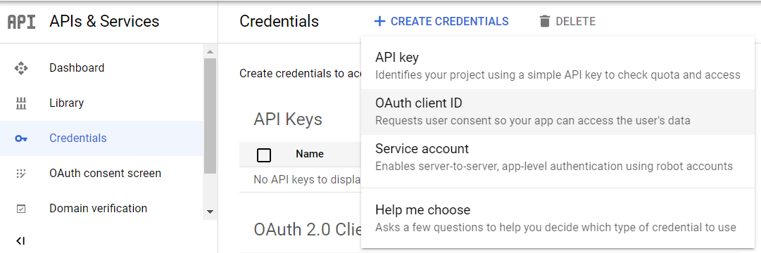 Tiếp theo, chọn Credentials => CREATE CREDENTISLS => Oauth client ID