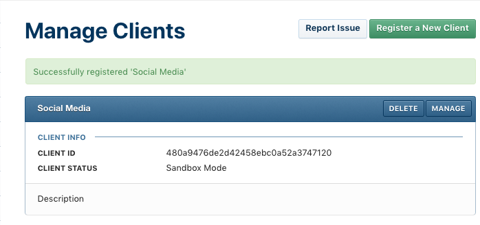 Tiếp đến chúng ta chọn Manage Clients -> Register a New Client