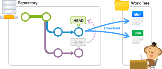 Checkout một branch nghĩa là tạo một nhánh mới từ một nhánh nào đó. Đây là khái niệm khi dùng để phân nhánh và những thao tác sẽ được lưu trữ trên nhánh hiện tại, không làm ảnh hưởng đến nhánh cũ.