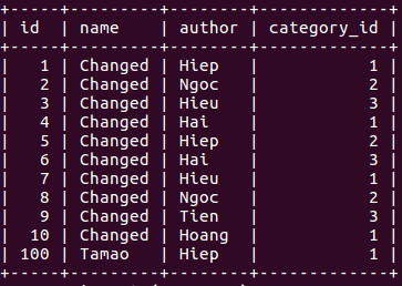 UPDATE book SET name = 'Toriko changed' WHERE id=2;