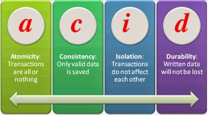 - Atomicity (Tính nguyên tử): 1 transaction phải như 1 đơn vị công việc, hoặc tất cả các thay đổi dữ liệu được thực thi, hoặc không thay đổi nào được thực hiện.