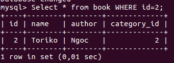 - Trong bảng book mình có 1 bản ghi với id = 2 như sau: