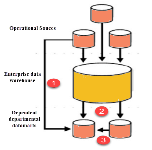 Dữ liệu phụ thuộc có thể được xây dựng theo hai cách khác nhau. Người dùng có thể truy cập cả data mart và kho dữ liệu, tùy theo nhu cầu hoặc nơi truy cập chỉ giới hạn ở data mart. Cách tiếp cận thứ hai không tối ưu vì đôi khi nó được gọi là dữ liệu cơ sở dữ liệu. Trong dữ liệu Junkyard, tất cả dữ liệu bắt đầu bằng một nguồn chung, nhưng chúng bị loại bỏ và chủ yếu là rác.