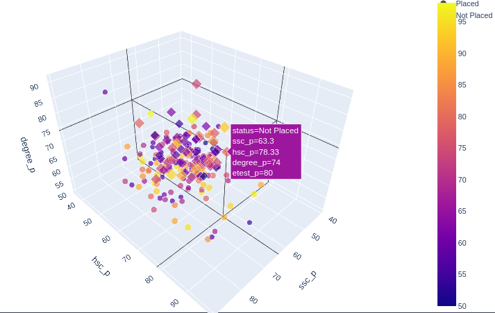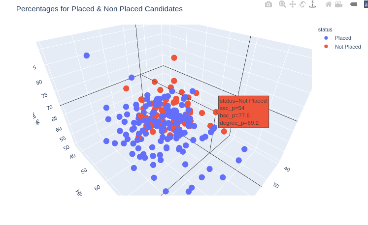 zaxis_title='Degree %'),title="Percentages for Placed & Non Placed Candidates")