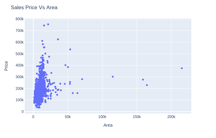 fig.update_layout(title='Sales Price Vs Area',xaxis_title="Area",yaxis_title="Price")