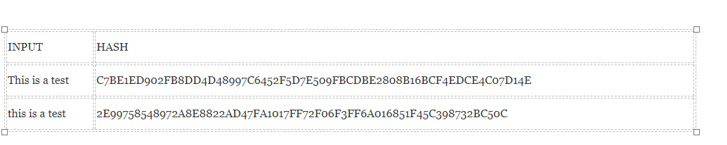 Ngay cả khi trong trường hợp bạn chỉ thay đổi chữ cái đầu tiên của input như là chuyển chữ cái in hoa thành chữ cái in thường, toàn bộ các kí tự trong giá trị băm thay đổi
