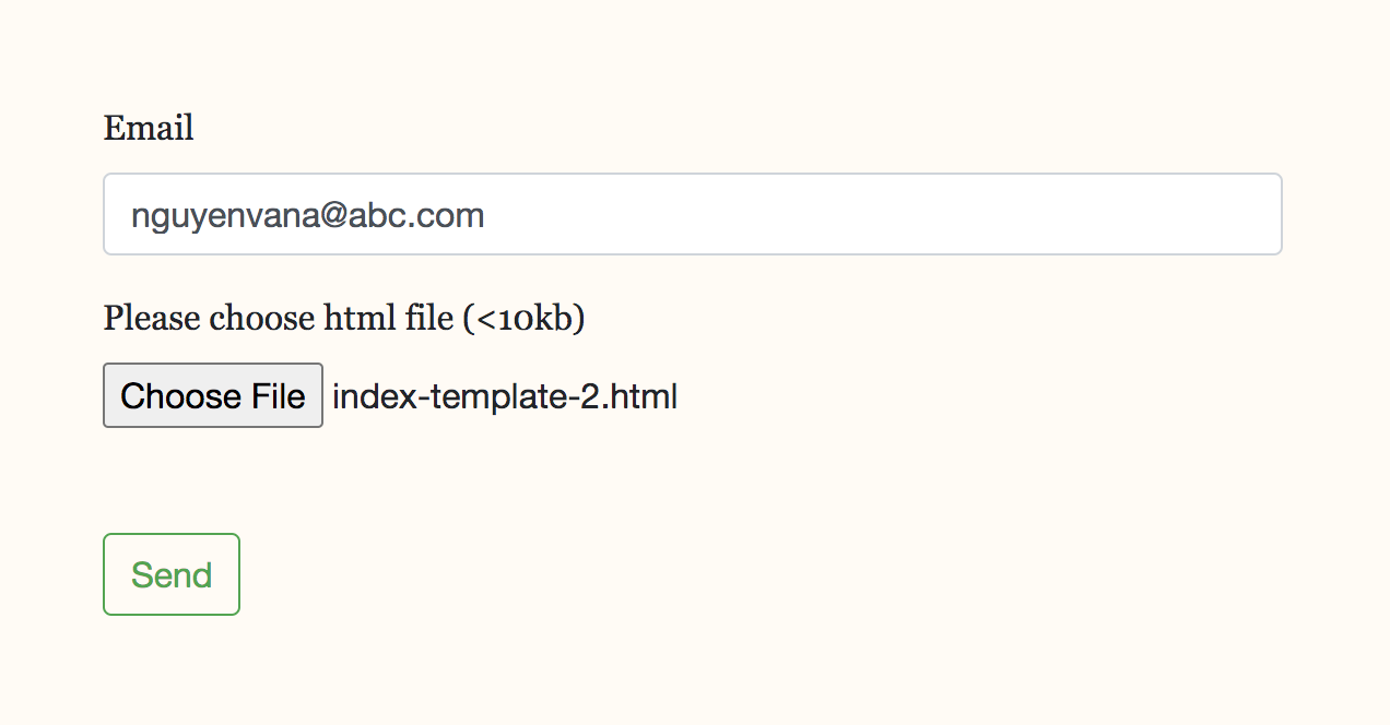 - Input HTML file - Dùng để nhập file HTML để gửi.