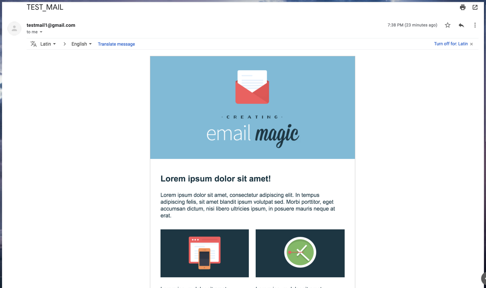 Tuyệt vời! Thế là template mail của chúng ta đã hoạt động rồi.
