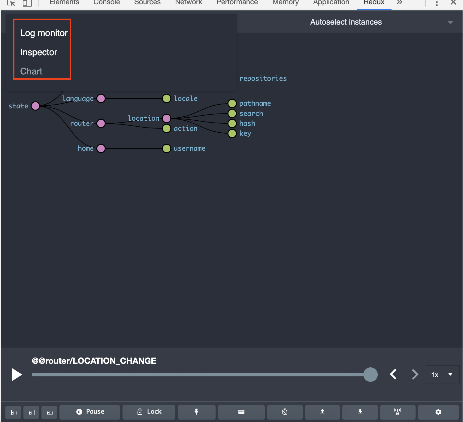 nếu muốn xem cấu trúc của store thì chat là một sự lựa chọn tốt, còn muốn xem logic actions và các action thay đổi ảnh hưởng đến store như nào thì log monitor, hoặc imspector là sự lựa chọn sáng suốt