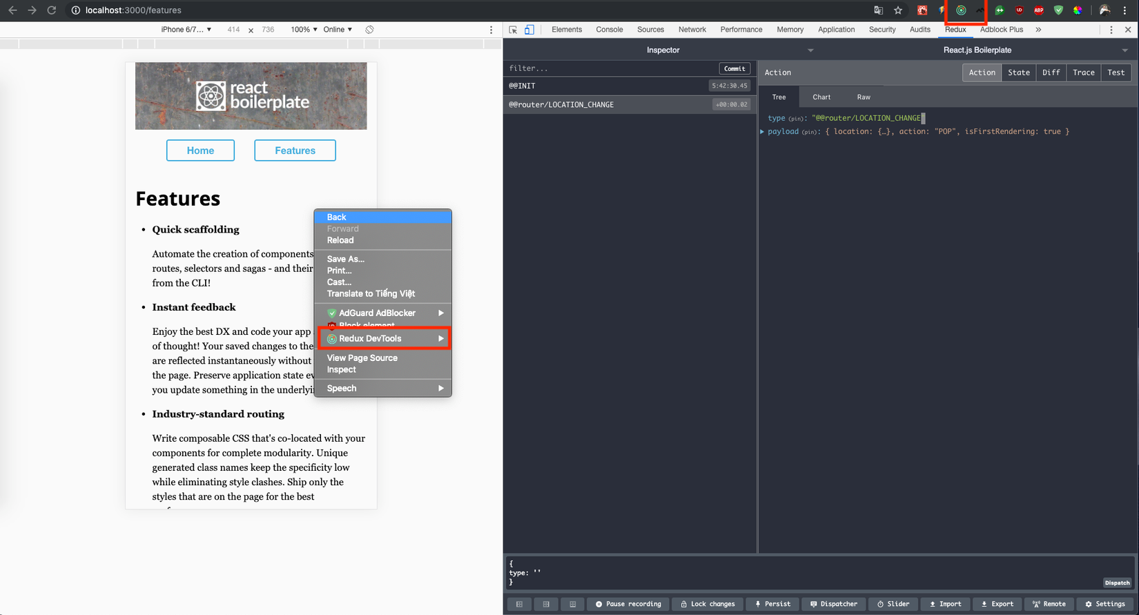 Đối với các dự án sự dụng redux, mình xin giới thiêu một công cụ rất hữu ích một extention có trên chrome, firefox đó là Redux DevTools.
