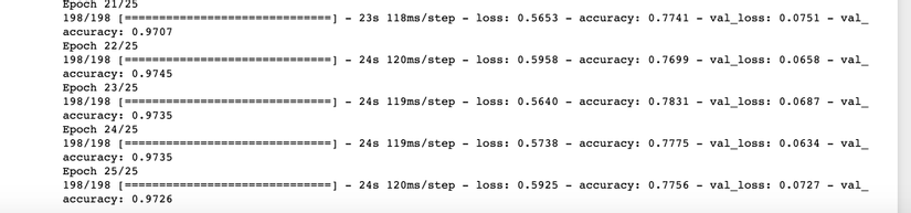 Kết quả sau 25 epochs đầu tiên, cũng khá ổn, mọi người có thể nhận thấy val_acc cao hơn so với train_acc, thì khả năng cao là các case model phải học ở tập train là khó hơn so với ở tập validate. Điều này chứng minh là model đang đi đúng hướng, tiếp theo chúng ta mở 1 số layers ra rồi train thêm 100 epochs nữa nhé (của mình là mở từ layer 15 trở đi vì mô hình VGG đã rất sâu rồi nên mình chỉ mở đến đây thôi):