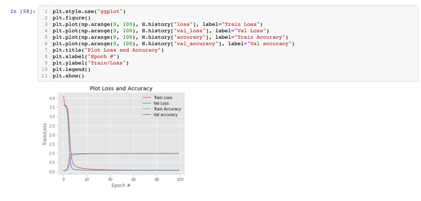 Đây là kết quả cuối cùng sau 100 epochs, chúng ta sẽ plot quá trình training lên để hiểu rõ hơn về sự biến đổi, quá trình hội tụ của model xem sao nhé:
