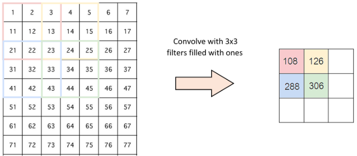 Sự kết hợp của 1 hình ảnh với các bộ lọc khác nhau có thể thực hiện các hoạt động như phát hiện cạnh, làm mờ và làm sắc nét bằng cách áp dụng các bộ lọc. Ví dụ dưới đây cho thấy hình ảnh tích chập khác nhau sau khi áp dụng các Kernel khác nhau.