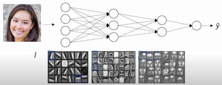 Mạng lưới thần kinh sâu tìm mối quan hệ với dữ liệu (quan hệ đơn giản đến phức tạp). Lớp ẩn đầu tiên có thể đang làm gì, đang cố gắng tìm các hàm đơn giản như xác định các cạnh trong ảnh trên. Và khi chúng ta đi sâu hơn vào mạng, các chức năng đơn giản này kết hợp với nhau để tạo thành các chức năng phức tạp hơn như nhận diện khuôn mặt. Một số ví dụ phổ biến về việc tận dụng **deep neural network ** là: