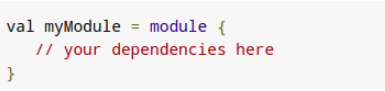 module { } : Là một Koin Module (hoặc một Koin Submodule trong một module khác)