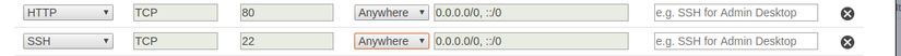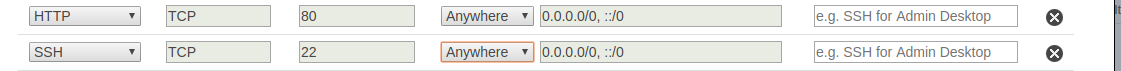 Ở setting cho Security group lưu ý là config Http cần chọn thêm anywhere để có thể truy cập từ bất kỳ ip nào. Ssh cũng vậy.