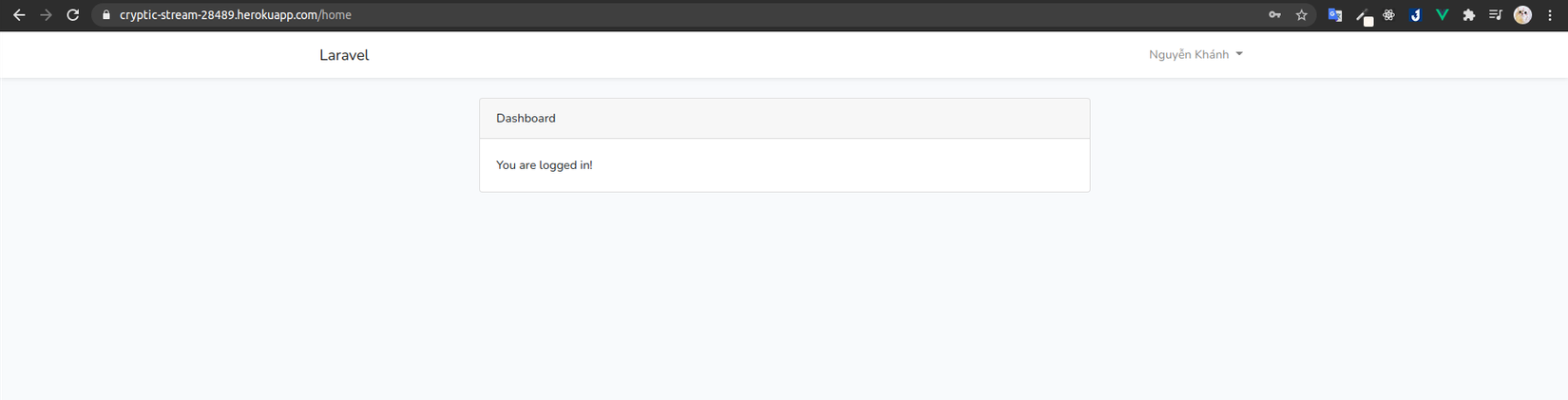 Trên Terminal thực hiện command heroku open để mở app, và dưới đây là kết quả sau khi chúng ta deploy