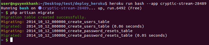 Bây giờ bạn có thể thực hiện các command của Laravel ngay trên Heriku CLI