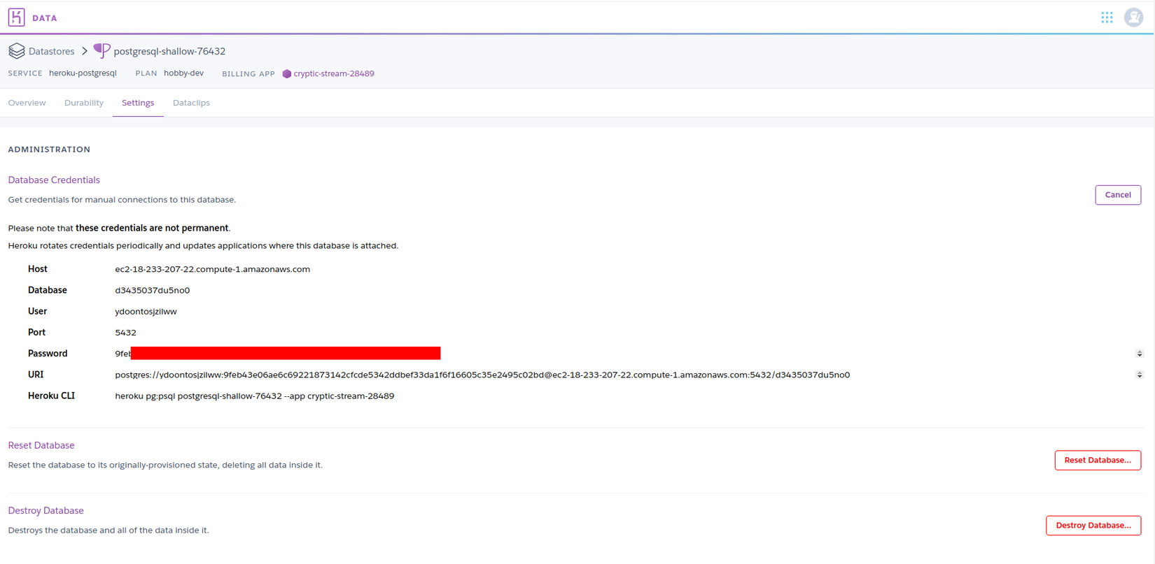 Thực hiện cài Heroku Postgres và cấu hình lại cho App