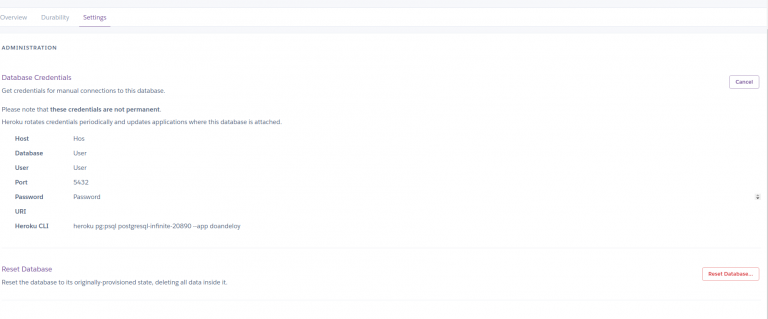 Điền toàn bộ thông tin bạn đã lấy được từ lúc settings Heroku Postgres vào đây
