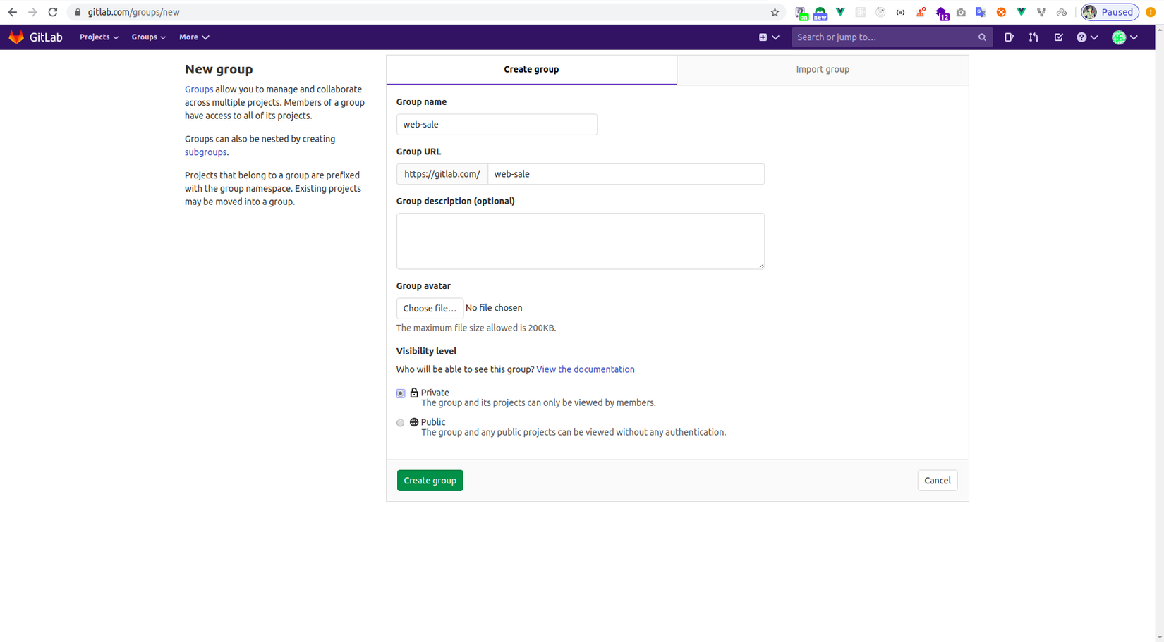 1. Tạo group, repository cho dự án trên gitlab