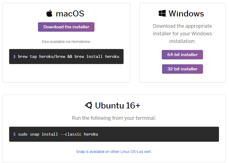 Chúng ta truy cập vào link : https://devcenter.heroku.com/articles/heroku-cli để download phiên bản dùng cho hệ điều hành của mình.