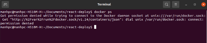 Lưu ý: Nếu các bạn dùng linux/ubuntu có thể sẽ gặp lỗi liên quan đến permission docker (như ảnh bên dưới).