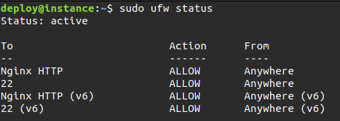 Cuối cùng, gõ lệnh sudo ufw status để xem kết quả: