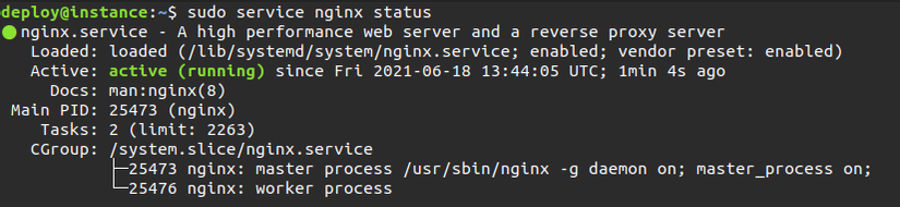 Sau đó, chúng ta kiểm tra status của nginx server: