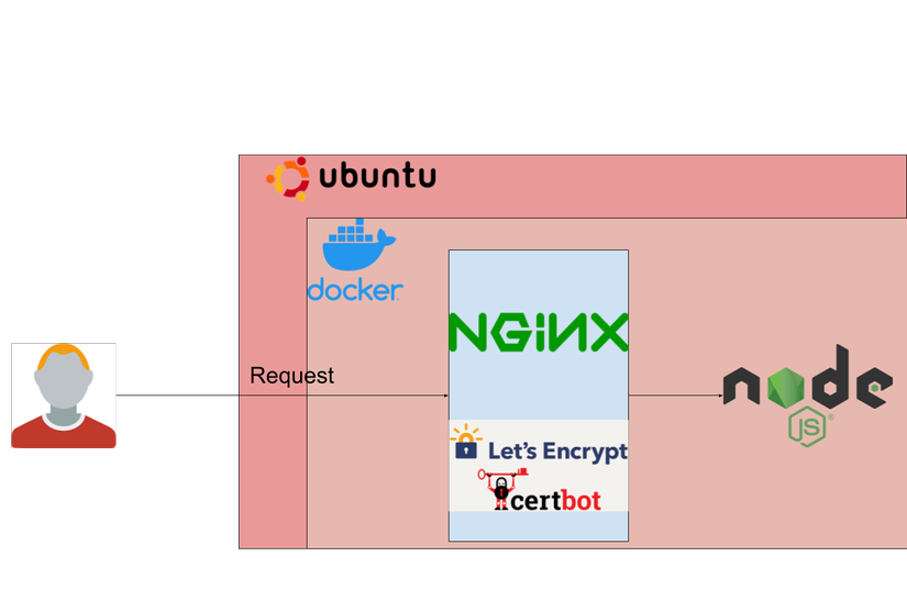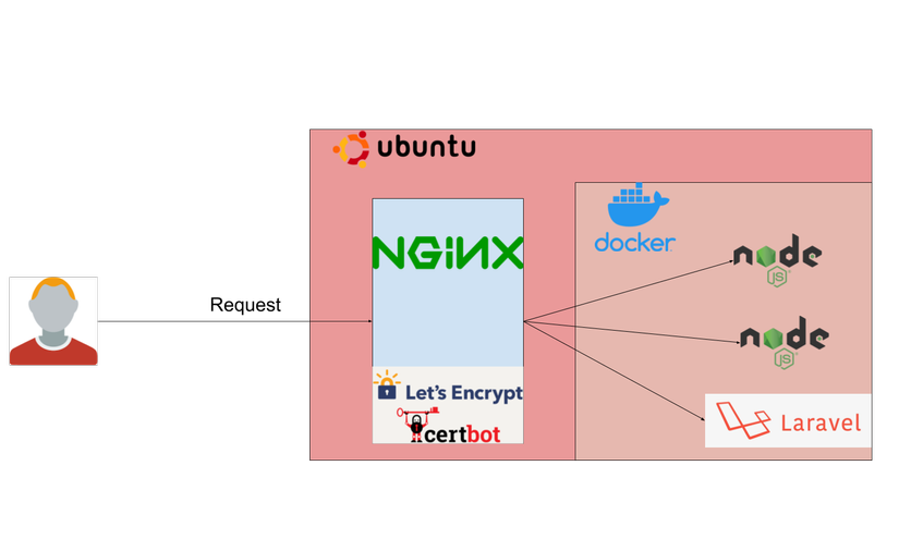 Do vậy sau 1 thời gian làm mình đã chuyển qua cách khác, đó là đưa Nginx + Certbot ra môi trường ngoài, làm nhiệm vụ chuyên trách như 1 tầng bảo mật chứ không chạy trong container nữa. Design mới nom sẽ như sau:
