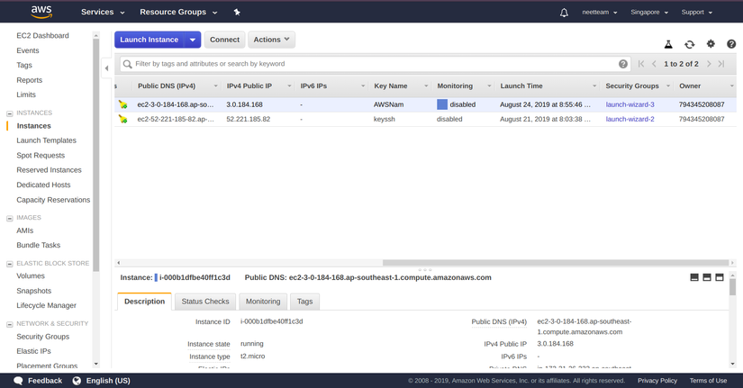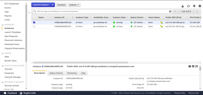 Đợi 1 lát cho instance chuẩn bị xong. Và có state là running là chúng ta có thể ssh vào được. Và để ý địa chỉ ipv4 public. Ở đây ip instance của mình là 3.0.184.168. Lát nữa mình sẽ dùng ip này để ssh.![]()
