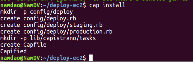 - Sau khi cài đặt xong thì chạy lệnh cap installđể tạo file config cho việc deploy.![]()