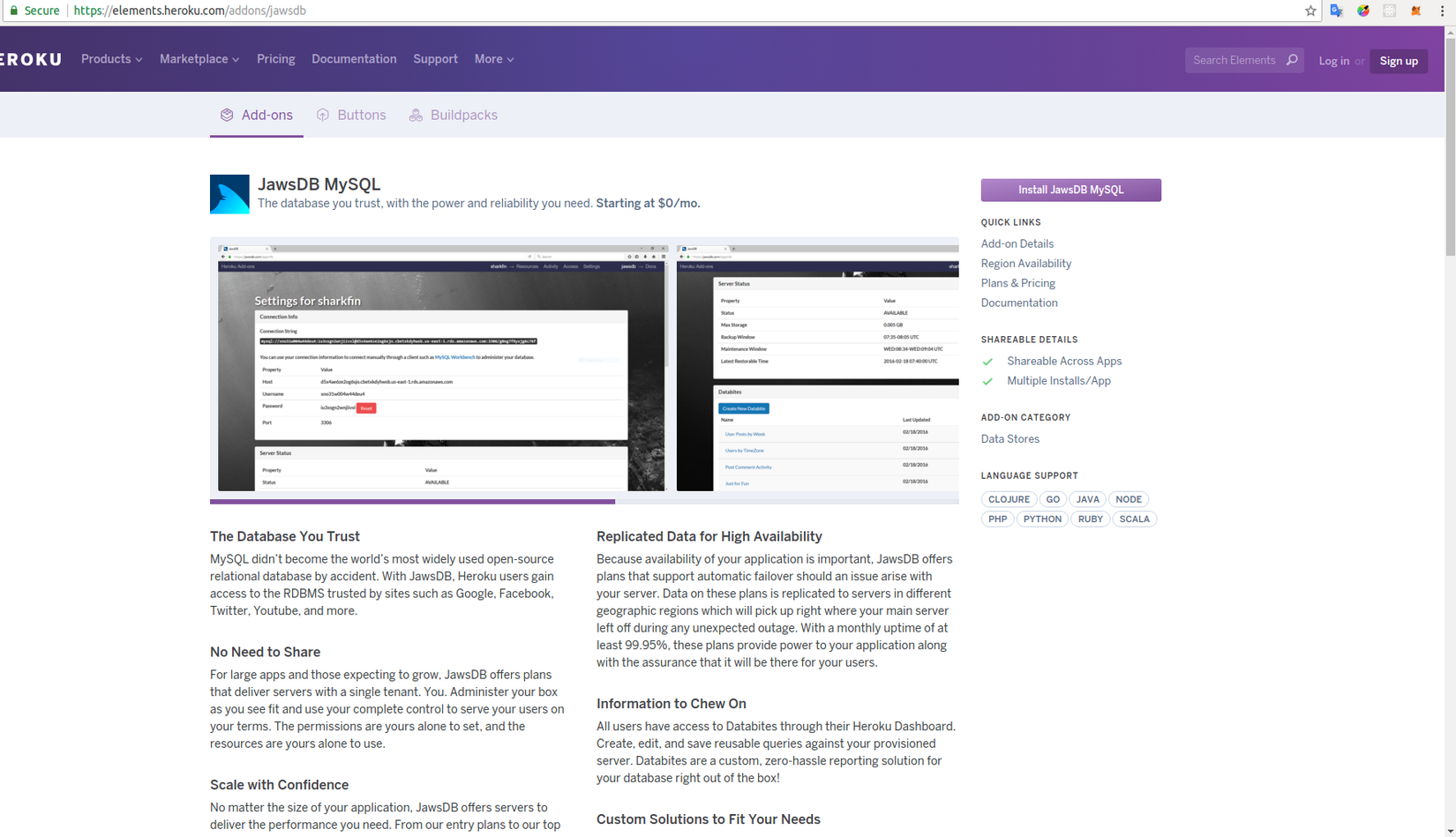 Trong ví dụ lần này mình sẽ chọn JawsDB MySQL