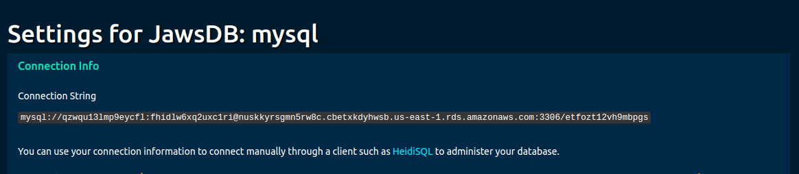 - Lấy giá trị của JAWSDB_URL từ tài khoản heroku: