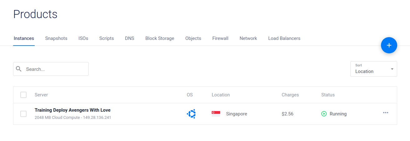 Sau khi cập nhật thông tin thanh toán thành công, bạn sẽ được đưa đến trang Products, đây chính là nơi để bạn tạo mới một Instance.