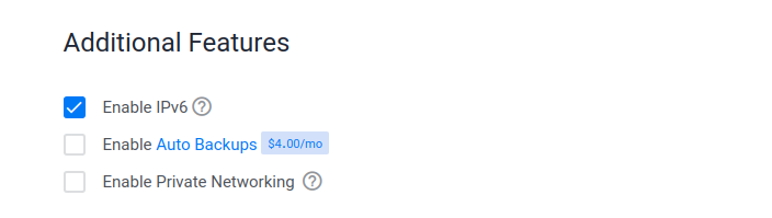 . - Enable Private Networking: Thêm IP nội mạng để kết nối với VPS, nếu cần thì chọn.
