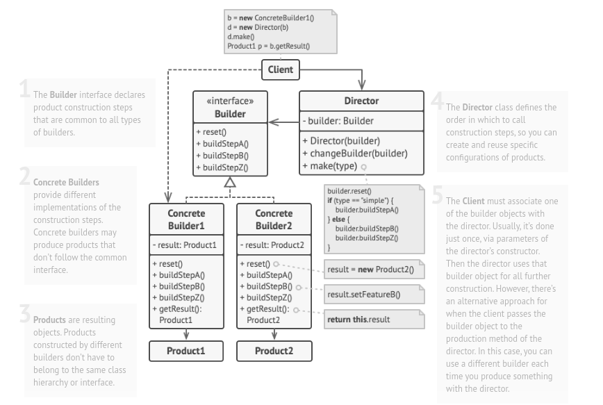 Link tham khảo: https://refactoring.guru/design-patterns/builder