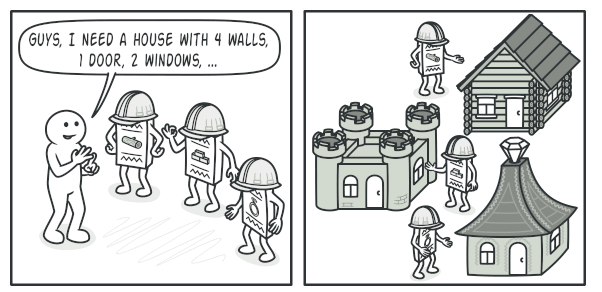 Ví dụ: hãy nghĩ về cách tạo đối tượng House. Để xây một ngôi nhà đơn giản, bạn cần xây dựng bốn bức tường và một tầng, lắp cửa ra vào, lắp một cặp cửa sổ và xây dựng một mái nhà. Nhưng nếu bạn muốn một ngôi nhà lớn hơn, sáng sủa hơn, có sân sau và các tiện ích khác (như hệ thống sưởi, hệ thống ống nước và hệ thống dây điện)?