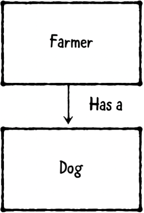 Chúng ta có thể sử dụng không giới hạn số lượng mũi tên chỉ quan hệ và các class trong một Class Diagram. Ví dụ cách thức biểu thị một người nông dân (Farmer) có một con chó chăn cừu (SheepDog) là một con chó (Dog):