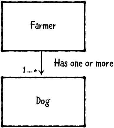 Chúng ta có thể biểu diễn quan hệ một - nhiều (one - to - many). Ví dụ một người nông dân (Farmer) có thể sở hữu nhiều chó (Dog):