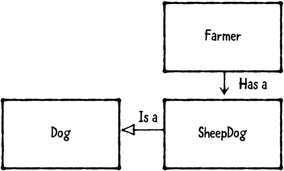 Trong Class Diagram phía trên, chúng ta sẽ đọc như sau: "SheepDog is a Dog".