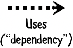 Sử dụng mũi tên nhọn đứt đoạn để để sở hữu quan hệ phụ thuộc (use)