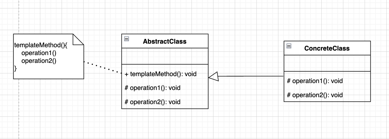 - AbstractClasss: Là lớp Abstract chứa hàm templateMethod() định nghĩa ra bộ khung thuật toán. Hàm này sẽ gọi những hàm nguyên thuỷ chưa được cài đặt.