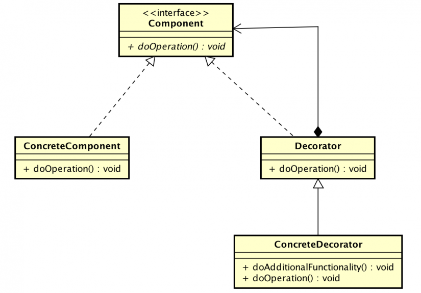 Các thành phần của Decorator được mô tả trong lược đồ UML sau.