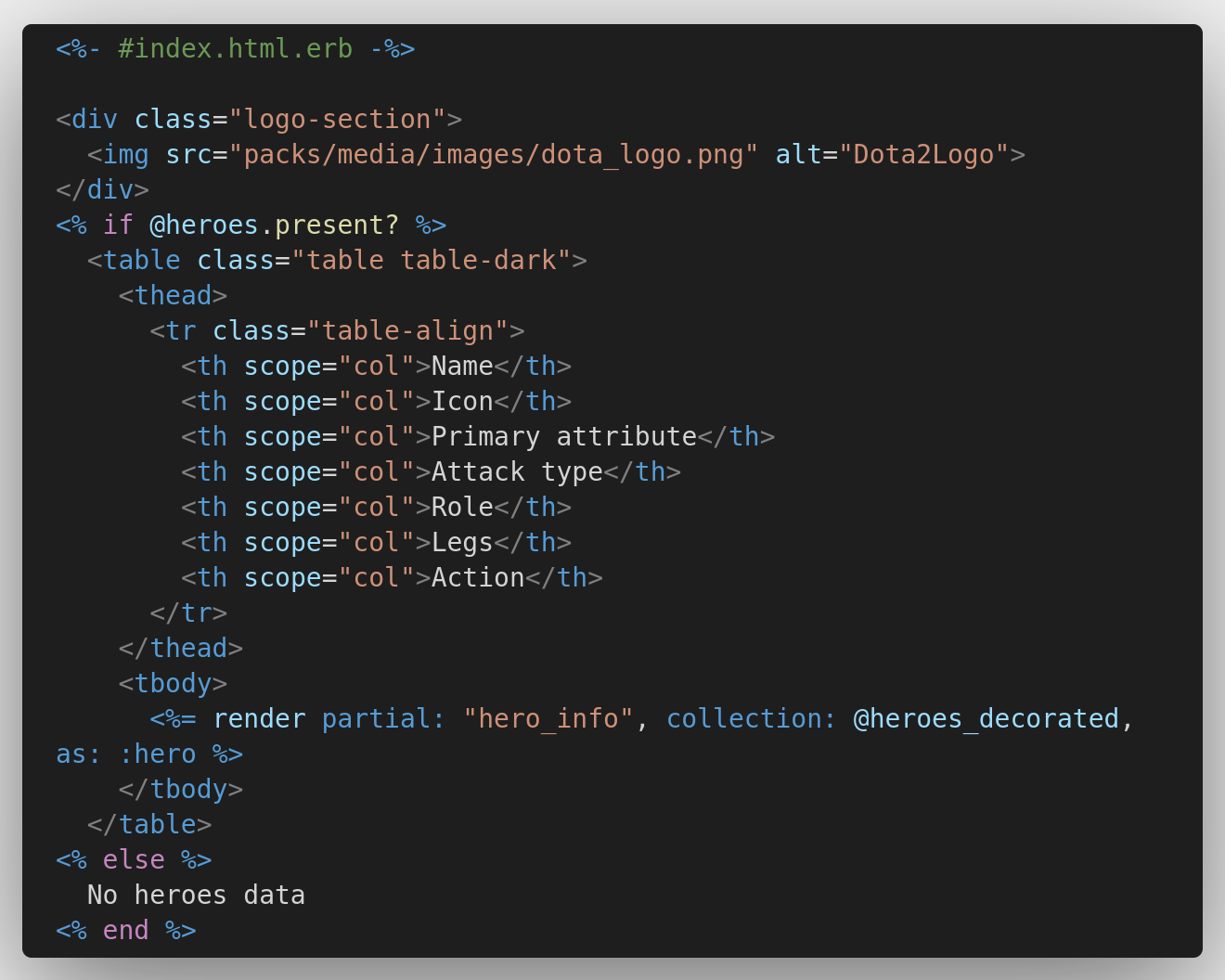 rolesnày thì quá đơn giản rồi, chỉ là mình cho downcase hết các tên role trong mảng roles của mỗi hero thôi. Cái này để giúp thuận tiện hơn trong việc lấy và hiển thị icon của mỗi role cho bắt mắt hơn.