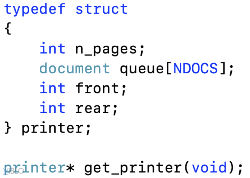 Có thể thấy ngay rằng, cấu trúc (struct) trong C có thể dùng cho các lớp (class) trong OOP, tuy nhiên ta sẽ không có các phương thức mà phải thay bằng các hàm thông thường. Printer được khai báo bằng struct như sau: